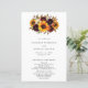 Floral sunflower wedding program featuring a rustic bouquet with watercolor painted sunflowers, red roses, purple flowers and greenery. This elegant program is great for a boho themed fall wedding. These cheap wedding programs are printed on sheets of paper for a budget friendly option.