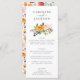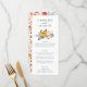 This autumn wedding menu features a watercolor floral fall bouquet and pretty typography. Personalise the fall wedding menu with the couple's names at the top, then add the reception dinner details below the floral bouquet. The back of the menu is decorated with a rustic floral pattern that includes roses, mums, and buttercups in pretty fall colours such as burgundy, plum, blush pink, and golden yellow.