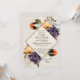 Fall themed stylish wedding invitation done in an ivory faux corrugated like texture. A brown framed ivory diamond shaped text area, has purple and golden yellow flowers with pampas grass and colourful feathers, decorating the top and bottom. Personalise all the text for your special day. Matching products are available.