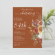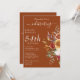 This design showcases elegant floral elements in autumn shades of gold, burgundy, greens and beige on terracotta font for a birthday party invitation. Explore the collection on this page to find coordinating items in this design.
