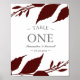 Rustic fall foliage table number sign frames your details with a border of autumn leaves in burgundy over a crisp white background. The font is set in modern sans serif and script typography. Perfect for fall garden theme weddings in September, October and November. To see more wedding ideas with autumn leaves visit www.zazzle.com/dotellabelle