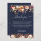 Fall foliage flowers with Birthday Thank You Card in navy blue, this is the thank you for the fall autumn colours birthday party collection set, but can be used as a thank you for any occasion.