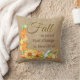 Rustic watercolor Fall pillow has a tan woven background with a beautiful arrangement of fall pumpkins, gourds and Fall foliage. Quote reads Fall is Proof That Change Is Beautiful.