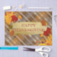 Personalised Thanksgiving tissue paper design featuring leaves and red berries on a autumn coloured plaid background. In the centre of the design there is a gold brushstroke and fully customisable text. To change it use the Personalise option. For more changes, such as changes to the font, font colour or text layout, use the Edit design tool option.