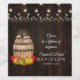Fall Foliage Wine Barrel String Lights card design featuring a watercolour wine barrel, gorgeous fall foliage, string lights, wine bottle, wine glass and traditional farm foods on the barrel, all on an old barn. Use Customise tool to add your info. You can change fonts, colours. For matching items, please, visit my Fall Foliage Wine Barrel Collection.