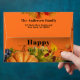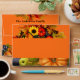 Personalised Thanksgiving envelope design featuring seasonal fall fruits, flowers and foliage on an orange coloured background. The text is fully customisable. To change it use the Personalise option. For more changes, such as changes to the font, font colour or text layout, use the Edit design tool option.