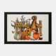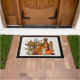 Fall Gnome Door Mat with pumpkins, fence and sunflowers.