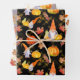 This is a cute set of gnomes, pumpkins and fall leaves wrapping paper in black, white and grey background colours.