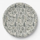 This elegant pattern features fall gourds, pumpkins and greenery in a simple block print pattern illustration in pale green and beige.