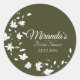 Pretty and modern bridal shower sticker features a spray of white flowers and white customisable text on Fall green background