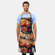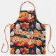 This apron design features a bold and vibrant autumn harvest theme. The background is a deep navy-blue tone, beautifully contrasted with clusters of fall leaves, flowers, and foliage in rich shades of burnt orange, golden yellow, warm cream, deep burgundy, and teal green. The layered, paper-cut style gives the design a modern yet festive dimension, making it perfect for Thanksgiving or fall cooking. The design blends personalisation with the cosy seasonal vibe. It adds a fun, possessive twist that makes the apron feel both playful and custom-made—ideal as a hostess gift, holiday kitchen accessory, or for anyone who wants to claim their space in the kitchen during the holidays.