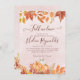 This invitation captures the essence of autumn's warmth and bohemian sophistication, ensuring your celebration will be truly memorable. Central to the design is a delicately painted pumpkin in soft hues, representing the bountiful joy of the fall season. Surrounding the pumpkin are stunning watercolor flowers and foliage in rich terracotta and orange shades, reflecting the vibrant colours of autumn. This invitation masterfully combines rustic charm with bohemian elegance, perfectly embodying the spirit of a fall bridal shower.
