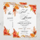 An elegant design fall floral, maple tree leaves, elegant calligraphy and a 'fall in love' theme with details you can add on the back.