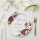 Fall in love boho earthy burgundy pumpkin sunflowers pampas grass bridal shower monogram personalised printed paper plates template personalised sunflowers bridal shower table decor