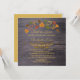 Rustic, fall season bridal luncheon wedding shower invitations classic fall colours- Autumn leaves and berries design adorns the top in fall colours of red, brown, orange, golden yellow and green. Against rustic wood background. Below reads 'Fall in Love Bridal Luncheon Honouring' with the bride to be's name in matching gold, pretty script. Below her name is a chic, gold metallic look scroll divider. Bridal luncheon details below that in golden hued lettering, including RSVP and store registry details. Back has solid golden yellow fall coloured background, which may be changed to any colour you prefer.