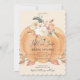 Watercolor Fall in Love bridal shower invitation features rustic pumpkin adorned with fall foliage.