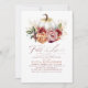 Fall in Love - bridal shower invitation features a watercolor white gilded pumpkin adorned with terracotta, burgundy red, rust flowers and gold leaves