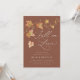 Celebrate the bride-to-be with this elegant fall bridal shower invitation by Redwood & Vine Design Co. Featuring hand-painted autumn leaves on a rich terracotta background, this double-sided design includes custom event details and a registry QR code on the reverse in a soft ecru tone. A cosy and romantic option for your autumn bridal celebration.