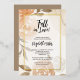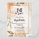 Beautiful fall flowers and leaves are featured on these real gold foil bordered autumn-themed Fall in Love bridal shower invitations.