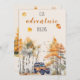 Fall in Love Mountain Wedding Save The Date Card. A beautiful way to announce your new adventure with this Save the Date-Adventure Begins card to personalise with your own customised photo, fonts, dates etc. Fall watercolors with trees and mountains and adventure off roading. Coordinates with our Fall in Love Muntain Wedding Envelope and Collection.