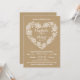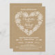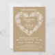 Elegant yet casual, this Wedding Invitation is perfect for any nature lover. Stylised lace leaves, pinecones, acorns, arrows, and flowers form a heart with a rustic kraft paper look background. Customise with your own text. Original Illustration by pj_design. Please check my store for more like this.