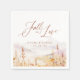 Watercolor autumn wildflower meadow and mountain with modern fall in love script, Earthy tones of terracotta, rust, ochre, and burgundy, warm and romantic, great napkin for rustic fall bridal shower, mountain destination wedding, and boho floral engagement party.
