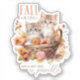 Celebrate the warmth of fall and the joy of simple pleasures with this adorable autumn-inspired sticker featuring playful kittens nestled in a basket of fall flowers. The phrase "Fall In Love With As Many Things As Possible" encourages gratitude, cosiness, and appreciation for the little joys of life. Perfect for cat lovers, fall enthusiasts, and those who cherish the beauty of the season.