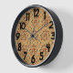 This wall clock has a geometric design of manipulated squares in orange, brown, shades of green on a field of cream. If you want the same design with different colours, message me.