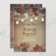 Rustic fall save the date invitation with burgundy maple leaves, mason jar lights and burlap decor.