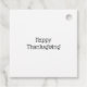 Autumn woodlands themed favour tag features fox and badger with leaves, berries, mushrooms and acorns on light grey background. Customisable text on back. Perfect for Thanksgiving parties.