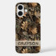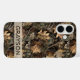 Customize this fall leaves camouflage iPhone 16 case with your name in a trendy modern CAP font in brown on opaque cream. It's masculine and perfect for your favorite military, hunting, country or outdoorsman!