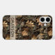 Customize this fall leaves camouflage iPhone 16 plus case with your name in a trendy modern CAP font in brown on opaque cream. It's masculine and perfect for your favorite military, hunting, country or outdoorsman!