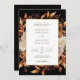 Fall Leaves | Elegant Black Wedding Invitation. This elegant wedding invitation features beautiful hand-painted watercolor burnt orange and terracotta leaves, cream and beige dahlias, and beautiful rust and brown roses on a black background, perfect for an autumn wedding! The back of the invite has a beautiful branch of leaves with the bride and groom's monogram. Find matching items in the Black Autumn Romance Wedding Collection.