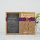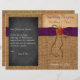 This gorgeous rustic autumn wedding program or Order of Service in fall colours of burnt orange, rust, gold and brown has images of three dried maple leaves on it with a PRINTED twine bow and bright purple satin look PRINTED ribbon and bow, and a FAUX burlap sack background with a FAUX chalkboard look overlay on it that matches the fall wedding invitation shown below. If you need assistance getting your information to fit or to align properly, please email niteowlstudio@gmail.com. Your document will print out as it appears on your monitor. It will NOT be edited for typos or alignment etc. by Zazzle. ****PLEASE NOTE that the higher grade paper is a card stock and does not fold well (cracks the design along the fold, even if you pre-score it with a sharp edge).