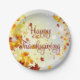Custom Happy Thanksgiving paper plates with fall leaves