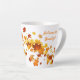 Ceramic coffee latte mug is shown with a pretty autumn fall leaves print.