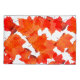 Printed with image of artistic, colorful orange maple tree leaf patterns in solid white background.