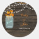 Rustic Barnwood, dangling string lights with fall leaves in a mason jar wedding favour stickers and envelope seals. Matching products also available