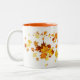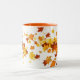 Ceramic coffee mug shown with a pretty autumn fall leaves print.Mug is shown in white with a orange interior.