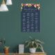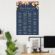 This fall leaves navy blue alphabetical seating chart poster is perfect for an October wedding. This sign can be used to organize your guests alphabetically or by table number. The modern rustic design features stunning hand painted watercolor autumn leaves in colorful shades of yellow, burnt orange, and burgundy red which pops on a navy blue background. This wedding poster includes enough room for up to about 120 guests. Make room for more (or less) guests by clicking the "customize" button and decrease or increase the size of the font. In addition to the placement of each guest, personalize this sign with the names of the bride and groom and the wedding date.