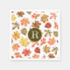 These colourful autumn leaves pattern paper cocktail napkins feature Oak, Maple, Chestnut, Cottonwood and Sweetgum watercolor leaves in rich orange, red, gold and green fall colours - your family's monogram is customisable on a dark loden green circle graphic - by katz_d_zynes | part of katzdzynes' Happy Fall Y'all collection >>> https://www.zazzle.com/collections/119508622310583832