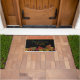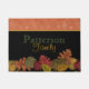 Add a colourful Fall themed to your front door, with this Autumn leaves personalised door mat. Graphics of colourful Fall leaves decorates the bottom of the black door mat, with an orange leaf pattern, across the top. Personalise the green and golden yellow text for yourself or as a great gift idea for anyone.