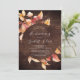 This fall leaves rustic brown wood housewarming party invitation is perfect for an October event. The rustic country design features stunning hand painted watercolor autumn leaves in sunset shades of yellow, burnt orange, and burgundy red which pops on a faux wood background.