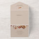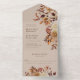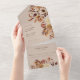 Taupe | Fall Leaves Wedding All in One Invitation. This elegant all-in-one wedding invitation features hand-painted watercolor burnt orange, copper, and terracotta leaves, cream and beige dahlias, and beautiful rust-coloured roses on a taupe background. RSVP is included with this stylish invite. Find matching items in the Taupe Autumn Romance Collection.