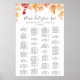 This fall leaves white alphabetical seating chart poster is perfect for an October wedding. This sign can be used to organise your guests alphabetically or by table number. The rustic design features stunning hand painted watercolor autumn leaves in sunset shades of yellow, burnt orange, and burgundy red. This wedding poster includes enough room for up to about 120 guests. Make room for more (or less) guests by clicking the "customise" button and decrease or increase the size of the font. In addition to the placement of each guest, personalise this sign with the names of the bride and groom and the wedding date.