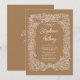 A pretty, understated and unusual light brown background sets off white hand drawn border art. These romantic invitations with their artwork of birds, roses, twining ribbons and butterflies will be an updated yet traditional way to invite your guests to your truly different wedding, and these would be exceptional for a fall or autumn wedding. The text is easy to personalise using the text templates and prompts on the product page. Whimsical, unique artwork & design by Tuzi Williams.