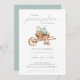 Invite your loved ones to celebrate your autumn baby shower, honouring you and your little pumpkin! This design features watercolor pumpkins in a rustic wooden wheel barrow with serif and handwritten cursive typography.