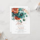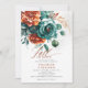 This Fall in Love Teal Burnt Orange Botanical Floral Wedding or Bridal Shower Invitation captures the essence of autumn with a boho botanical floral border featuring watercolor roses and wedding foliage in the rich, warm tones of teal and terracotta burnt orange, as well as the title "Fall in Love" in modern calligraphy. The inviting design is complemented by a pale watercolor texture, evoking the crisp air and golden hues of fall. Ideal for a bride planning a rustic, garden bridal shower, or an intimate backyard celebration, this invitation perfectly reflects the cosy and romantic atmosphere of the autumn season, blending romantic artistry with elegant simplicity for any venue.