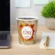 With our wonderful personalised Thanksgiving paper cups, you may experience the genuine spirit of thankfulness and unity. Dive into the harmonic balance of a modern font combination, in which a delicate, handcrafted script gently pairs with a sleek, contemporary sans serif. Encircled by a pristine white circle adorned with a delicate touch of crimson, behold a captivating array of maple leaves, showcasing the intricate mosaic of autumn's lively colour palette – an elegant transition from radiant golds to fiery reds and cosy, natural browns. Every component of the text may be customised to your liking.