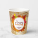 With our wonderful personalised Thanksgiving paper cups, you may experience the genuine spirit of thankfulness and unity. Dive into the harmonic balance of a modern font combination, in which a delicate, handcrafted script gently pairs with a sleek, contemporary sans serif. Encircled by a pristine white circle adorned with a delicate touch of crimson, behold a captivating array of maple leaves, showcasing the intricate mosaic of autumn's lively colour palette – an elegant transition from radiant golds to fiery reds and cosy, natural browns. Every component of the text may be customised to your liking.